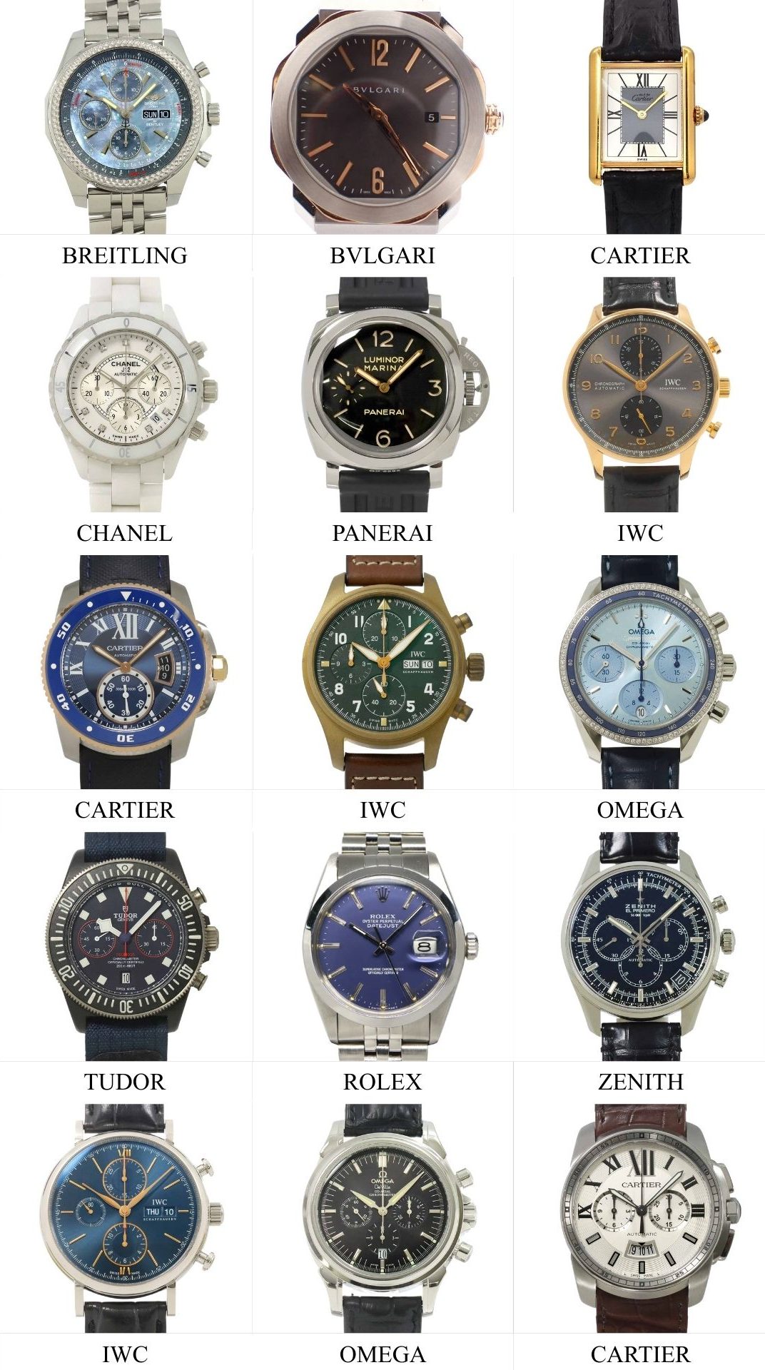 Watch enthusiasts will discover iconic models from Rolex, Cartier, Omega, Chopard, Jaeger-LeCoultre, and IWC Schaffhausen.